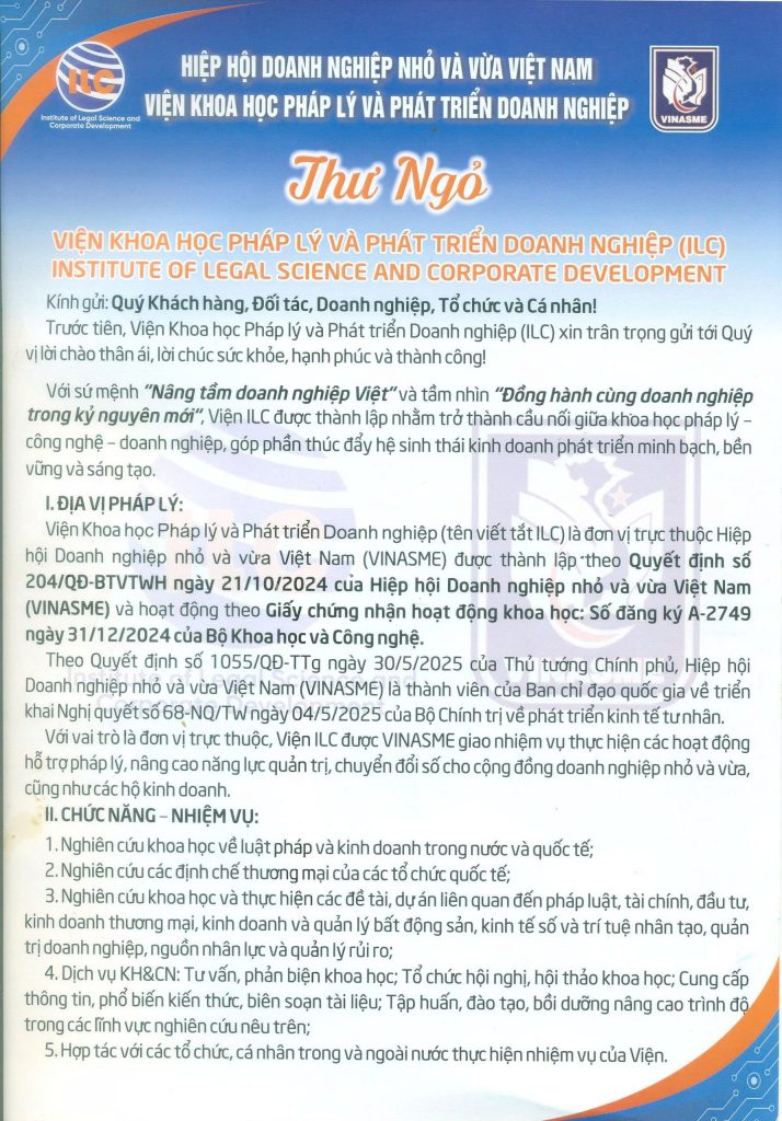 Sự kiện đánh dấu bước phát triển mới trong nỗ lực tăng cường công tác nghiên cứu, tư vấn pháp lý và hỗ trợ phát triển doanh nghiệp trong bối cảnh hội nhập kinh tế sâu rộng hiện nay. Viện Khoa học Pháp lý và Phát triển Doanh nghiệp ra đời với sứ mệnh trở thành cầu nối giữa doanh nghiệp – cơ quan quản lý – giới nghiên cứu, góp phần nâng cao năng lực quản trị, pháp lý và cạnh tranh của doanh nghiệp Việt Nam trên thị trường trong nước và quốc tế.