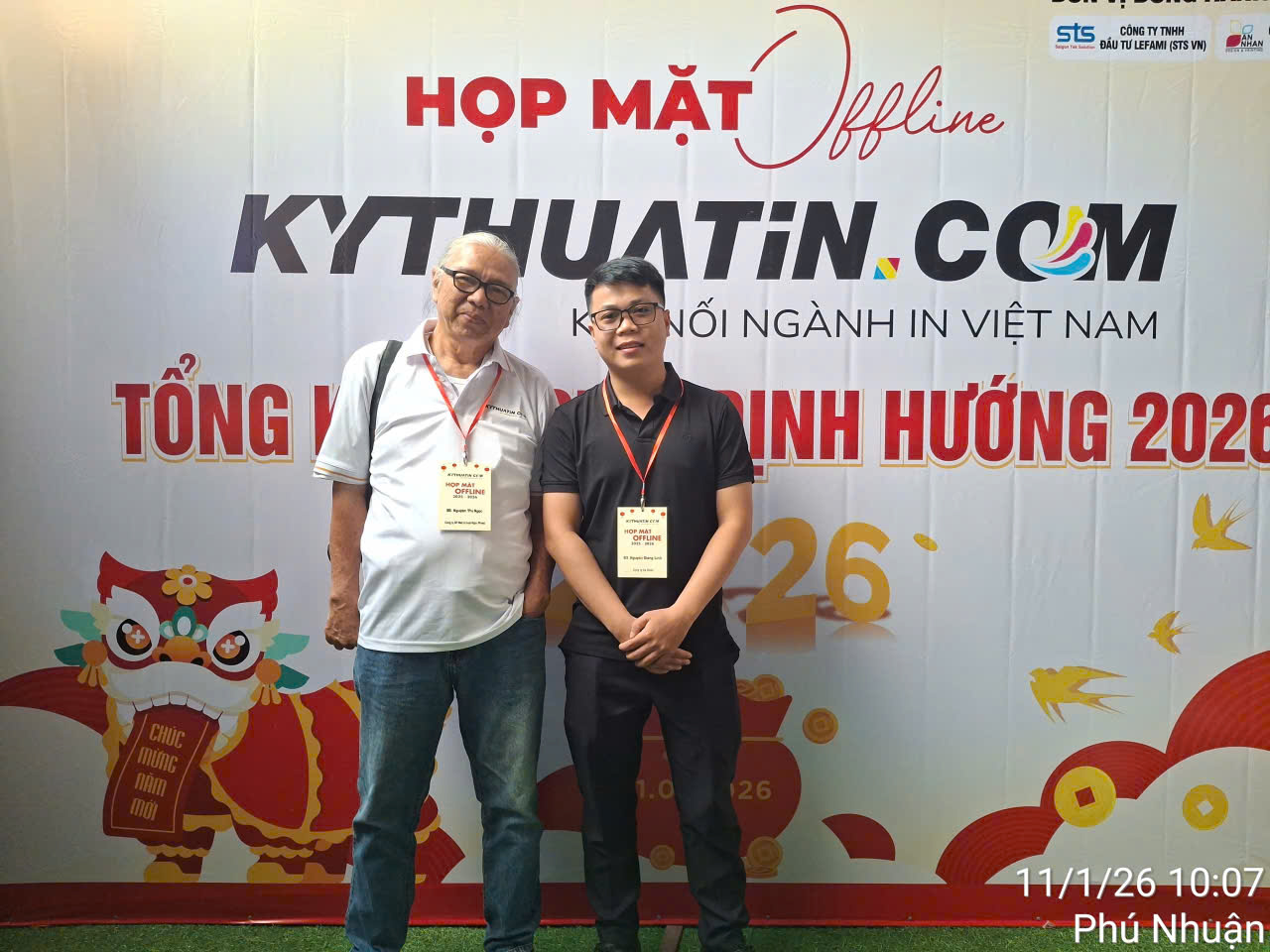 Ngày 11/01/2026, đại diện Công ty Cổ phần May – In Lụa Ngọc Phước là ông Võ Mạnh Đức – Tổng Giám đốc và ông Võ Ân Phước – Chủ tịch HĐQT Trường Ngọc Phước / Giám đốc Điều hành Công ty đã tham dự buổi Họp mặt Offline KYTHUATIN.COM – Kết nối ngành in Việt, được tổ chức tại Nhà hàng Thoáng Việt (số 309/1 Huỳnh Văn Bánh, phường Phú Nhuận, TP.HCM).