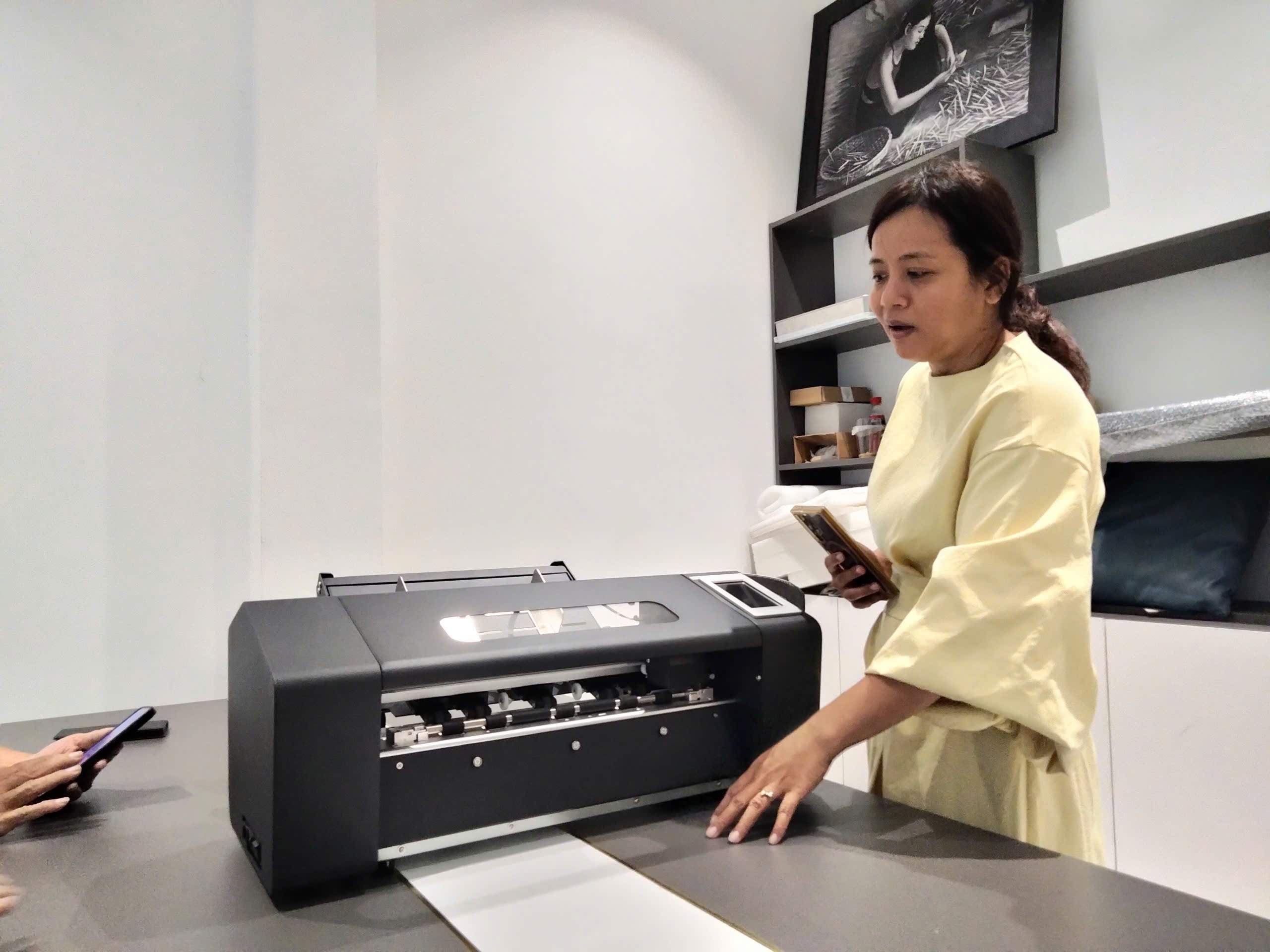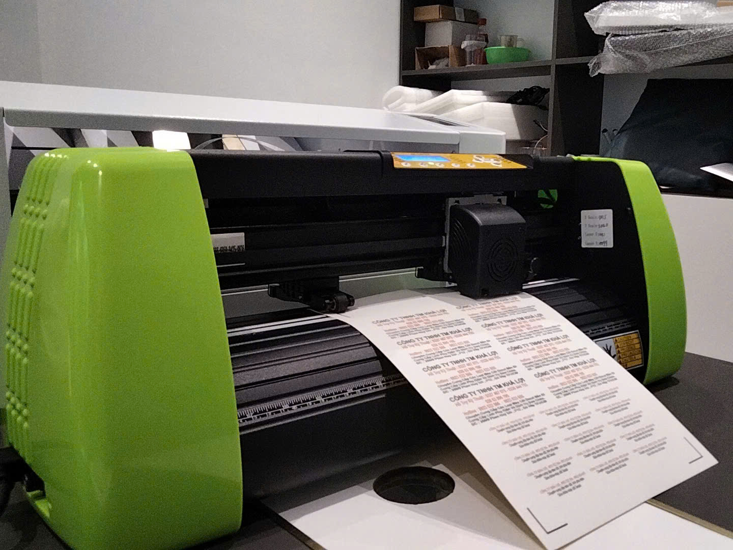 Tại buổi tham quan, đoàn đã trực tiếp khảo sát hệ thống máy móc, thiết bị, đặc biệt là các dòng máy cắt decal và giải pháp kỹ thuật đang được Công ty Khả Lợi cung cấp ra thị trường. Đại diện hai bên đã trao đổi về tính năng, công suất, mức độ phù hợp của thiết bị đối với nhu cầu đào tạo thực hành cũng như khả năng ứng dụng vào hoạt động sản xuất thực tế.
