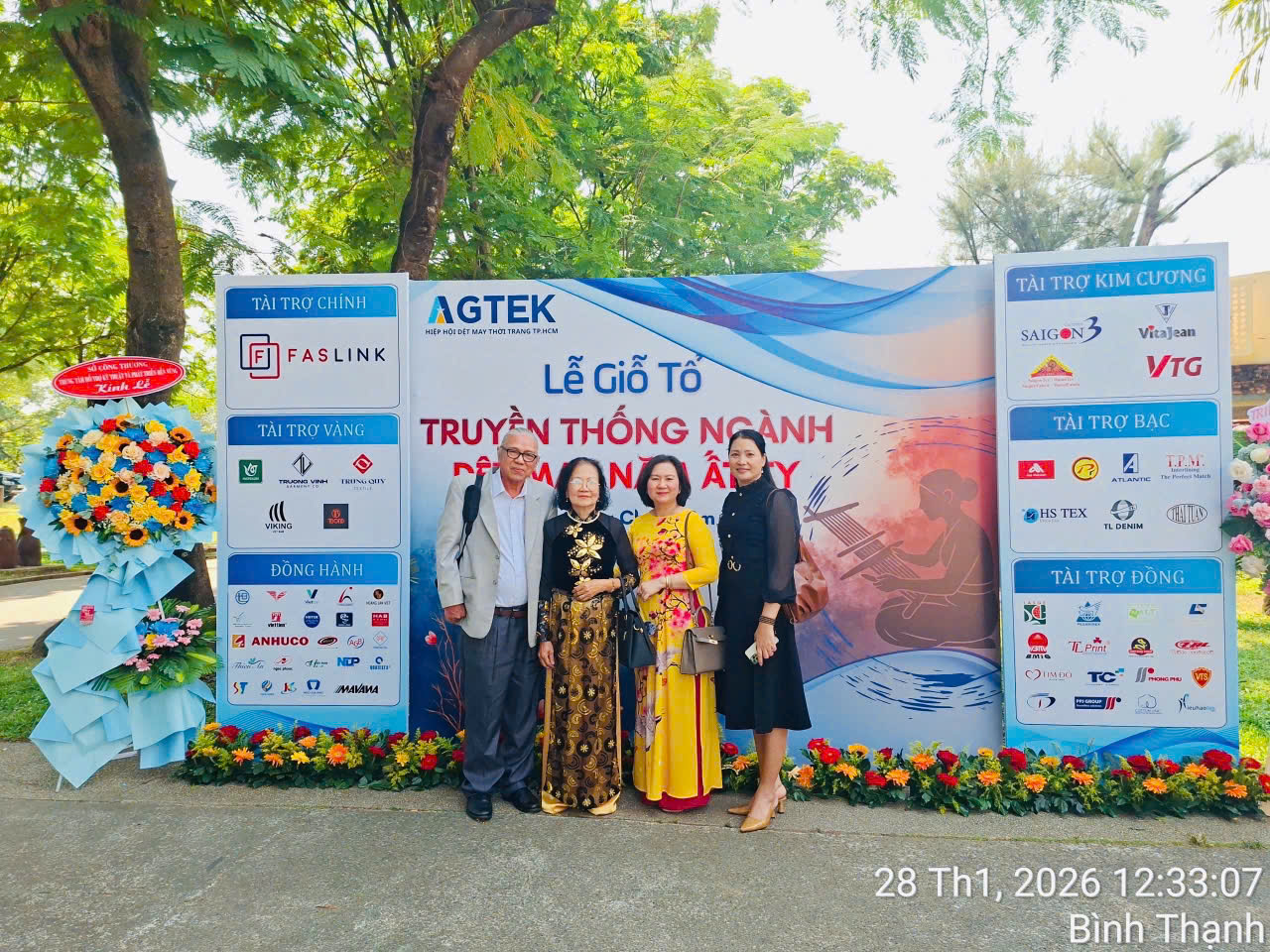 Ngày 28/01/2026 (Âm lịch Mùng 10 tháng Chạp năm Ất Tỵ), đoàn Công ty Ngọc Phước gồm bà Nguyễn Thị Ngọc – Chủ tịch Hội đồng Quản trị, ông Võ Ân Phước – Giám đốc điều hành, bà Trần Huỳnh Linh – Phó Giám đốc điều hành, bà Lê Nguyên Phương Thảo – Kế toán trưởng đã tham dự Lễ giỗ Tổ truyền thống ngành Dệt may do Hiệp hội Dệt may – Thời trang TP.HCM tổ chức thường niên tại Khu du lịch Văn Thánh.