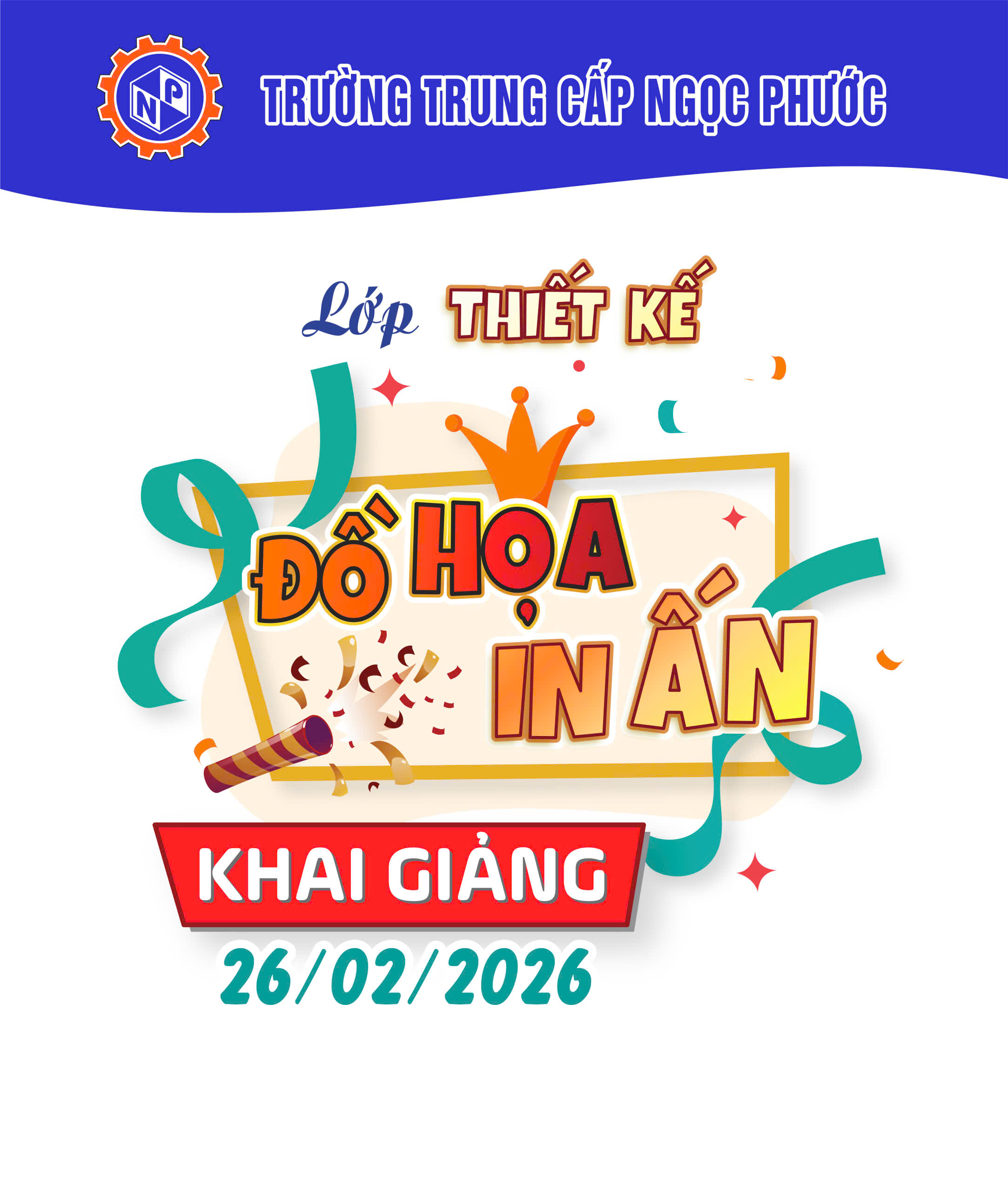 Trường Trung cấp Ngọc Phước thông báo khai giảng Lớp Thiết kế Đồ họa với chương trình đào tạo 3 tháng, tập trung “Thực hành – Ứng dụng thực tế – Gắn liền sản xuất doanh nghiệp”.