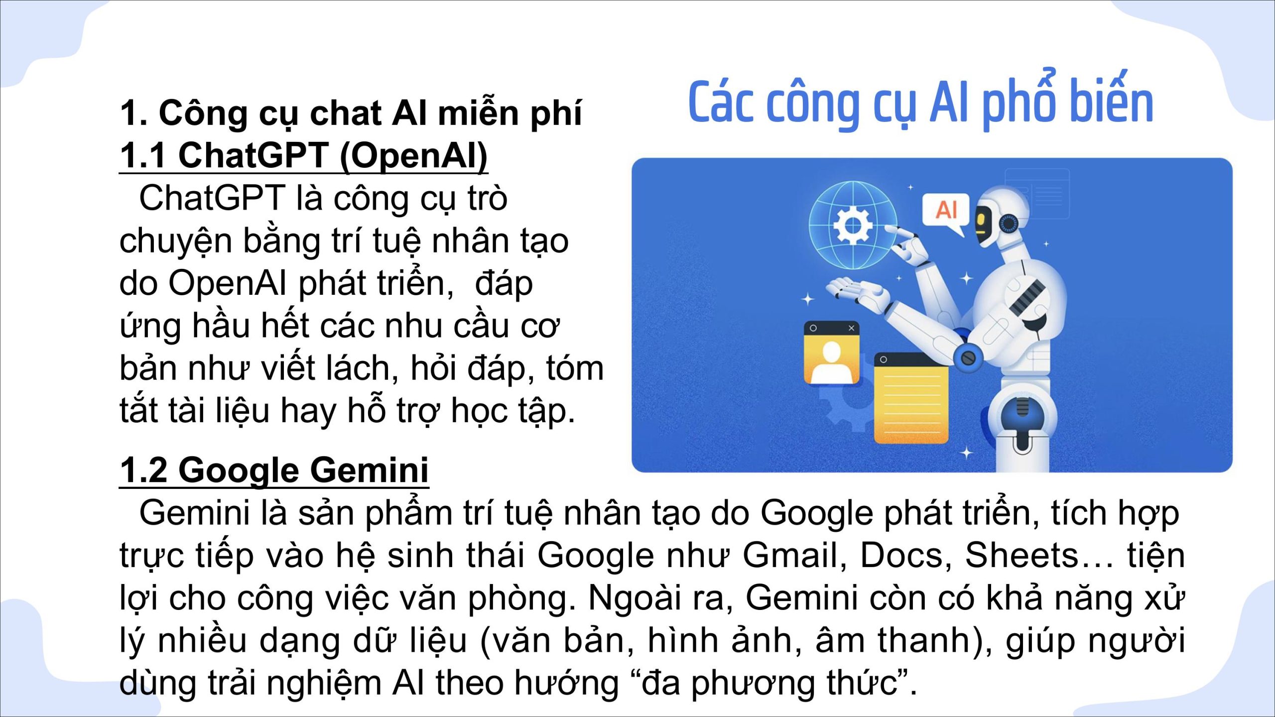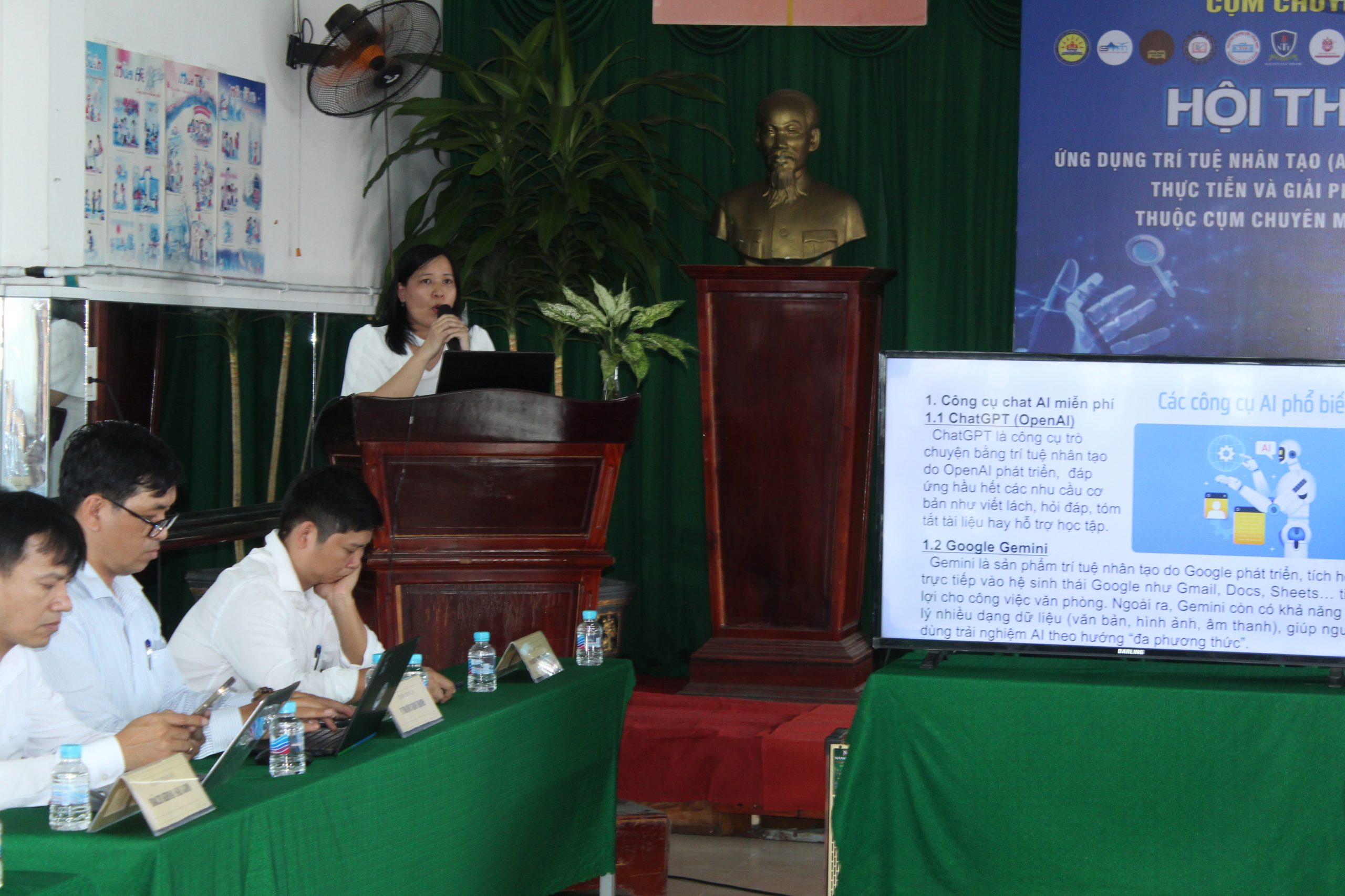 Thông qua phần trình bày, đoàn Trường Trung cấp Ngọc Phước không chỉ chia sẻ những kinh nghiệm thực tiễn trong quá trình triển khai mà còn đề xuất một số giải pháp khả thi nhằm từng bước đưa AI vào hoạt động giảng dạy và quản lý đào tạo. Những nội dung này đã nhận được sự quan tâm, trao đổi tích cực từ các đơn vị tham dự, góp phần thúc đẩy định hướng đổi mới giáo dục nghề nghiệp trong bối cảnh chuyển đổi số hiện nay.